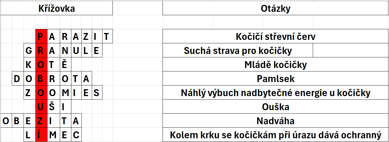 - Soutěžící se správně vyplněnou tabulkou postoupí do kola štěstí, kde bude vylosován 1 šťastlivec
